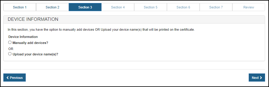 NOTE: Section 3 will display only one device. If you entered multiple devices in a section 3, click the