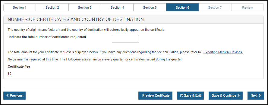 NOTE: The FDA will invoice your firm quarterly for all certificates issued during the quarter.