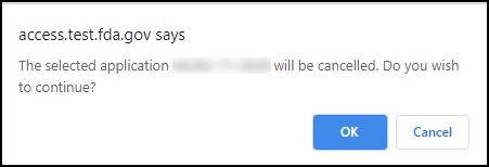 Once the application has been selected, as shown in Figure 16, a warning message will display prior to cancelling an application, as shown in Figure 17.