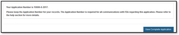 The system will display the application number and a message that the application was successfully submitted, as shown in Figure 23 below. NOTE: Please save this number for future reference. The application number will be required to check the status of the application. A confirmation email will be sent stating that the application has been successfully received; it will also include the application number.